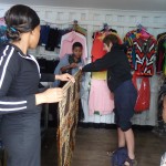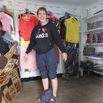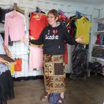 Undeterred, Diane wandered off across the road and found a shop that sold cloth. She rolled her trousers up to her knees, bought a piece of cloth, wrapped it round her waist and tied it in a knot.