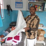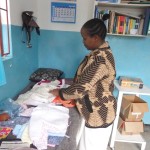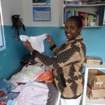 This afternoon we took a consignment of baby clothes and blankets to the clinic here at Meserani – made for us by the ladies who attend the Community Hub in Thornaby on Tees. Diane handed them over to the nurse, and also fitted out a Maasai toddler called Mary with a new dress. Images below: